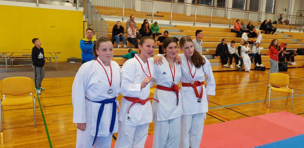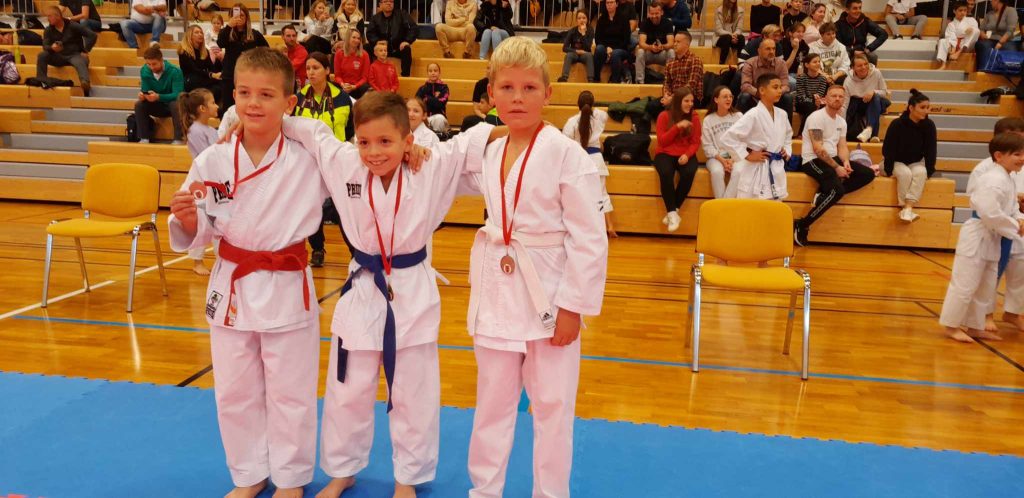 V nedeljo 5.11.2023 smo se z našimi najmlajšimi člani udeležili tekme Kozjanski zmaj Open. Na tekmi je sodelovalo 24 klubov, ki so skupaj opravili 185 nastopov. Naši člani so nastopali v katah in športnih borbah, za nekatere pa je to bil tudi prvi nastop na tekmi. Dosegli so naslednje rezultate: Babič Ana (borbe) 2. mesto kadetinje +54kg in 3. mesto mladinke +59kg, Gumzej Tai (borbe) 2. mesto ml. kadeti +55kg, Močenik Anže 1. mesto kata malčki in 3. mesto kata najmlajši, Šrot Eva 1. mesto kata deklice in 1. mesto kata deklice U12 in Tomc Bračič Jurij Gašper (borbe) 3. mesto dečki +56kg. Vsem čestitamo! ![]()